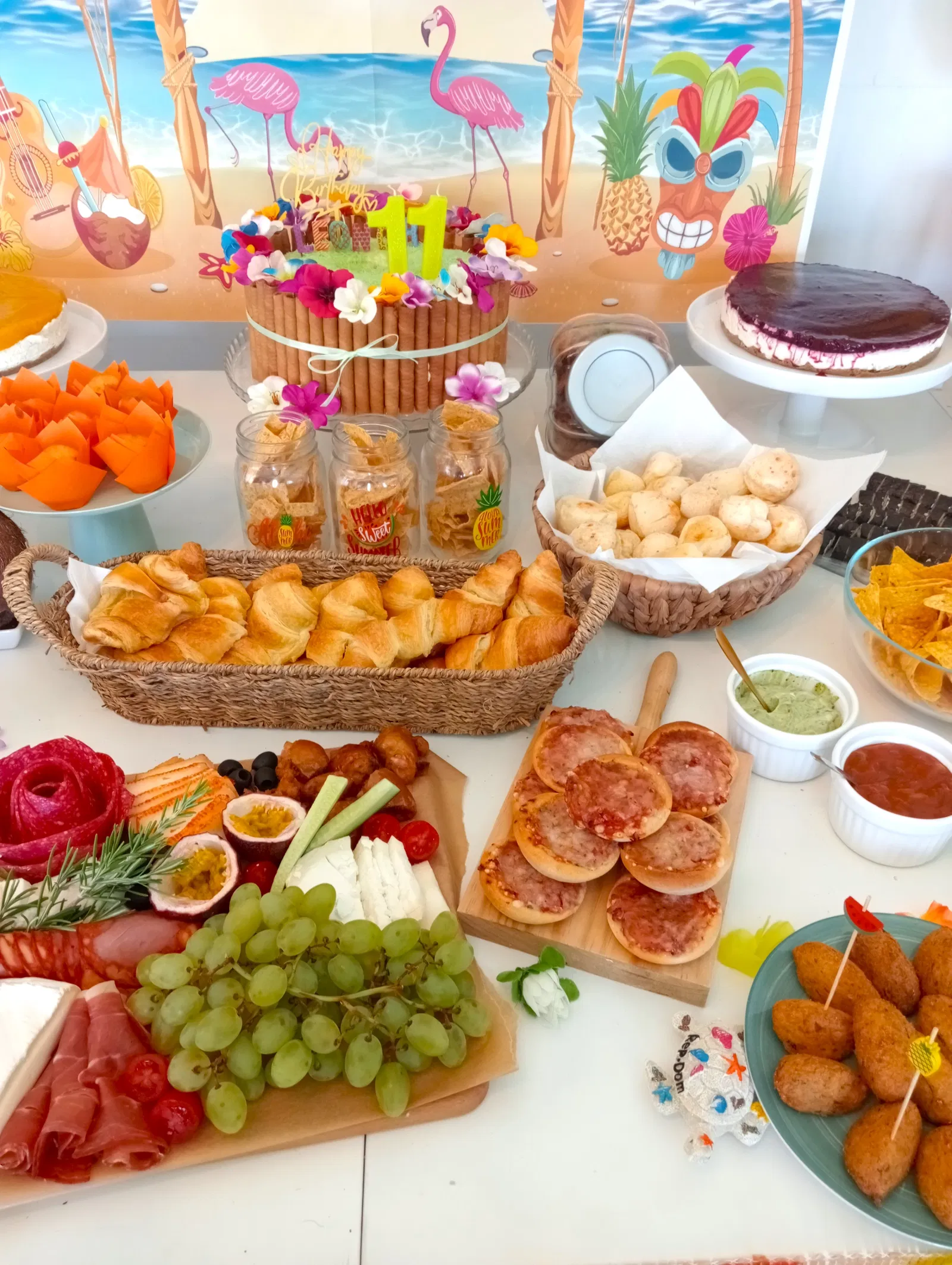 O aniversário da minha filhota é no Verão. Então, desde que ela deixou de querer temas de personagens infantis, optamos sempre por escolher temas tropicais com cheirinho a Verão 😊 Temos sorte de ter espaço exterior e uma piscina que, embora não muito grande, faz as delícias dos mais pequenos.