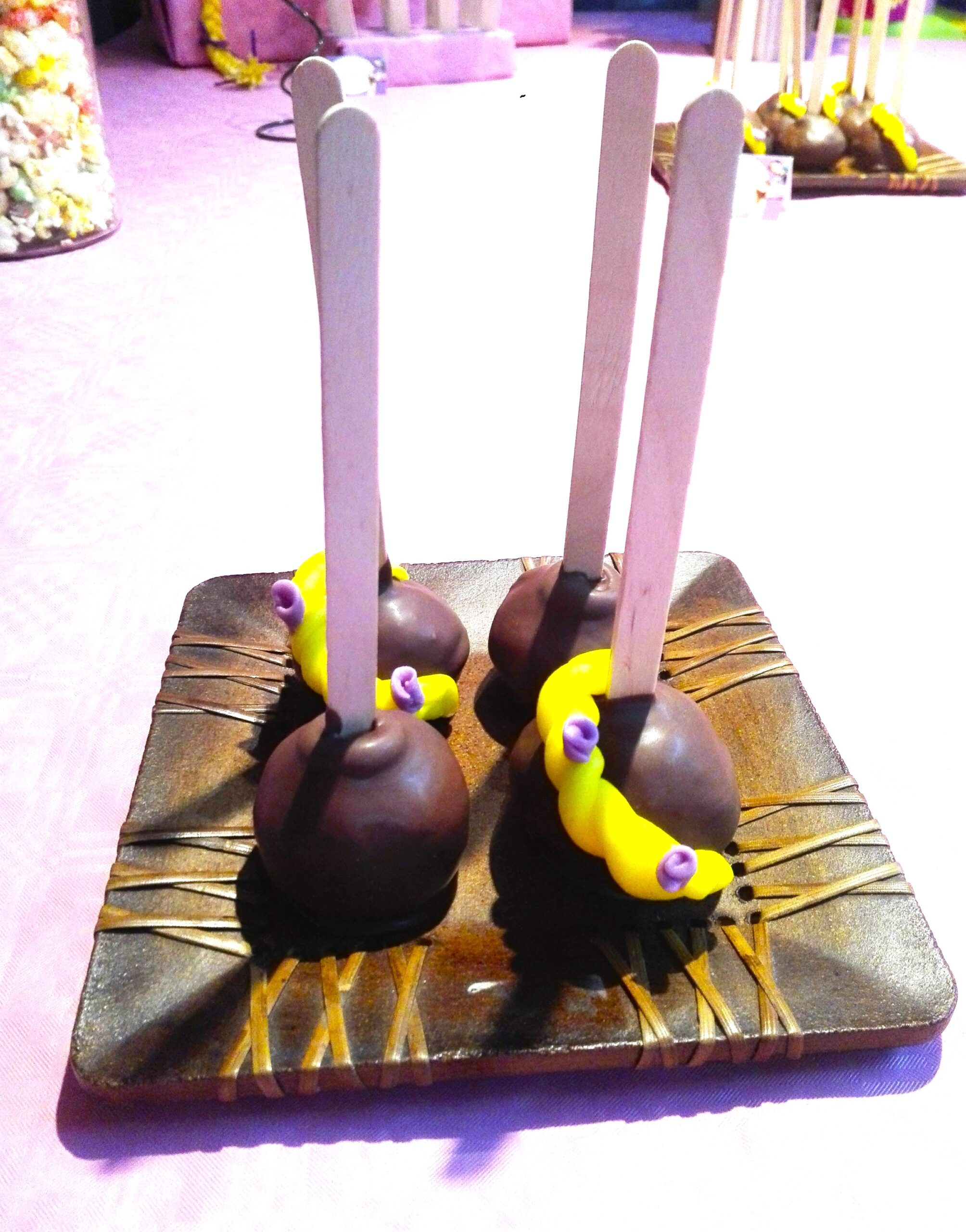 O bolo é o centro das atenções em qualquer festa infantil. Escolha um bolo em forma de torre ou decore um bolo tradicional com imagens da Rapunzel e elementos florais. Certifique-se de que é tão delicioso quanto bonito. Eu optei por um naked cake que decorei com uma trança e flores da Rapunzel feitas em pasta de açúcar.
